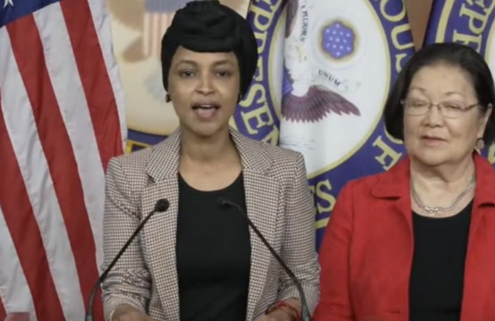 The moment came as Omar stood alongside several other House Democrats, calling for the repeal of the centuries-old law. The act had recently been invoked by President Donald Trump as part of an effort to speed up the deportation of suspected Venezuelan gang members living in the U.S. without legal status. As Omar read from prepared remarks, she referenced the last time the law had been used, during the internment and deportation of people of German, Japanese, and Italian descent.
