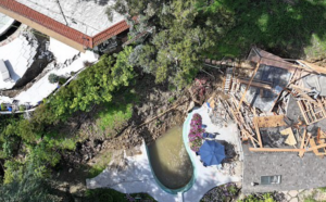 Apart from the destroyed mansion, the landslide damaged two other homes in the neighborhood. One property had its pool and deck pulled away, while the other had its tennis court and pool left on the edge of a huge fissure.