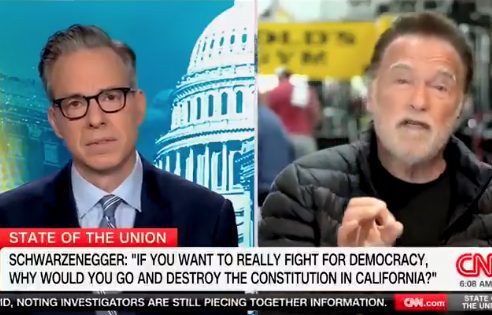 NEW: Arnold Schwarzenegger claps back at CNN’s Jake Tapper, calls out “extreme gerrymandering” in blue states.